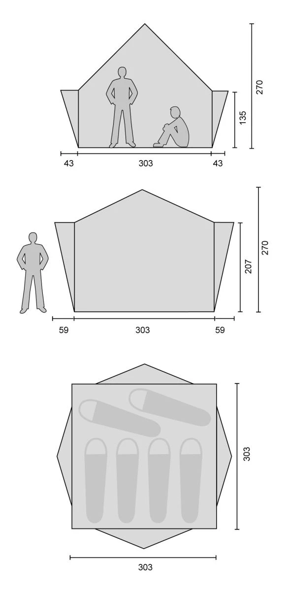 • Größe Überzelt (LxBxH) : 303 x 303 x 270 cm