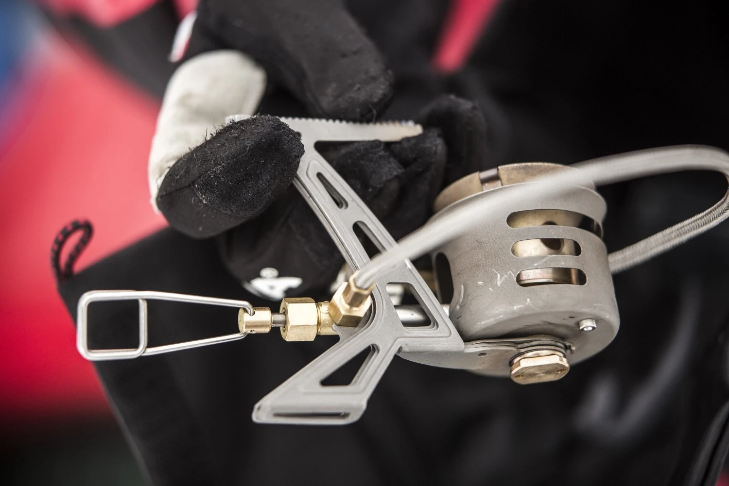 Genauso robust und zuverlässig ist der OmniLite Ti – kleiner, leichter und verbraucht weniger Brennstoff. Die Leistung wurde an die neue Generation Brennstoff-sparender Töpfe mit Wärmetauscher (wie die Primus Eta™ Töpfe) angepasst. Windschutz und Topfauflagen bestehen aus Titan, was den Kocher sehr leicht und zugleich robust macht. Der OmniLite Ti verbrennt Flüssiggas, Benzin, Petroleum, Kerosin und sogar Diesel. Über den Regler direkt am Brenner lässt sich die Flamme präzise und schnell auf die gewünschte Stärke einstellen. Sogar mit Handschuhen. Das Packmaß fällt sehr klein aus und der Kocher eignet sich perfekt für ein bis zwei umweltbewusste Personen.