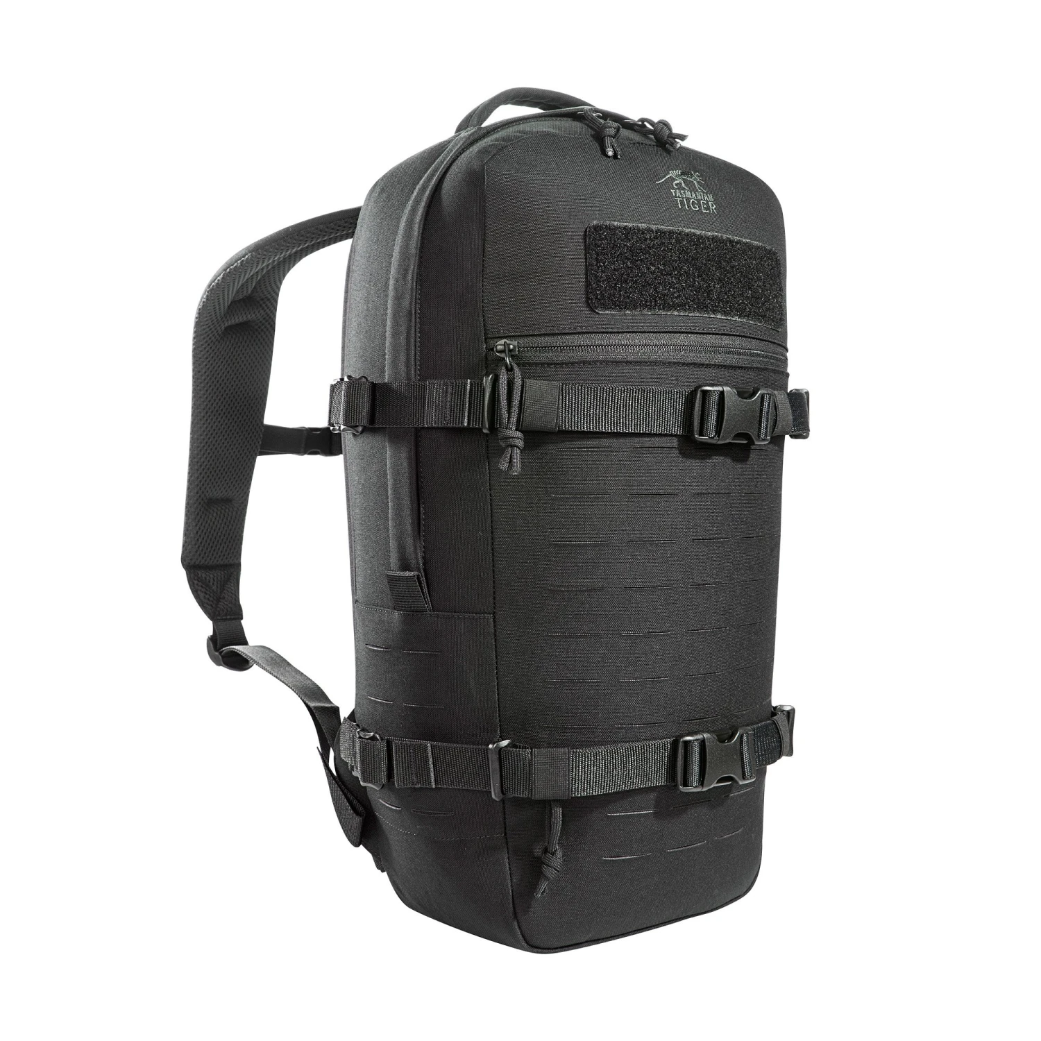 Modularer Daypack mit 18 Liter Volumen. Das Hauptfach des Tagesrucksacks ist an der inneren Rückwand mit Molle-Klett belegt und ermöglicht so die Bestückung mit Kletttaschen. Das flache Reißverschluss-Frontfach eignet sich zur Unterbringung von Dokumenten, Laser Cut-MOLLE auf der Front und an den Seiten erlaubt die individuelle Erweiterung.