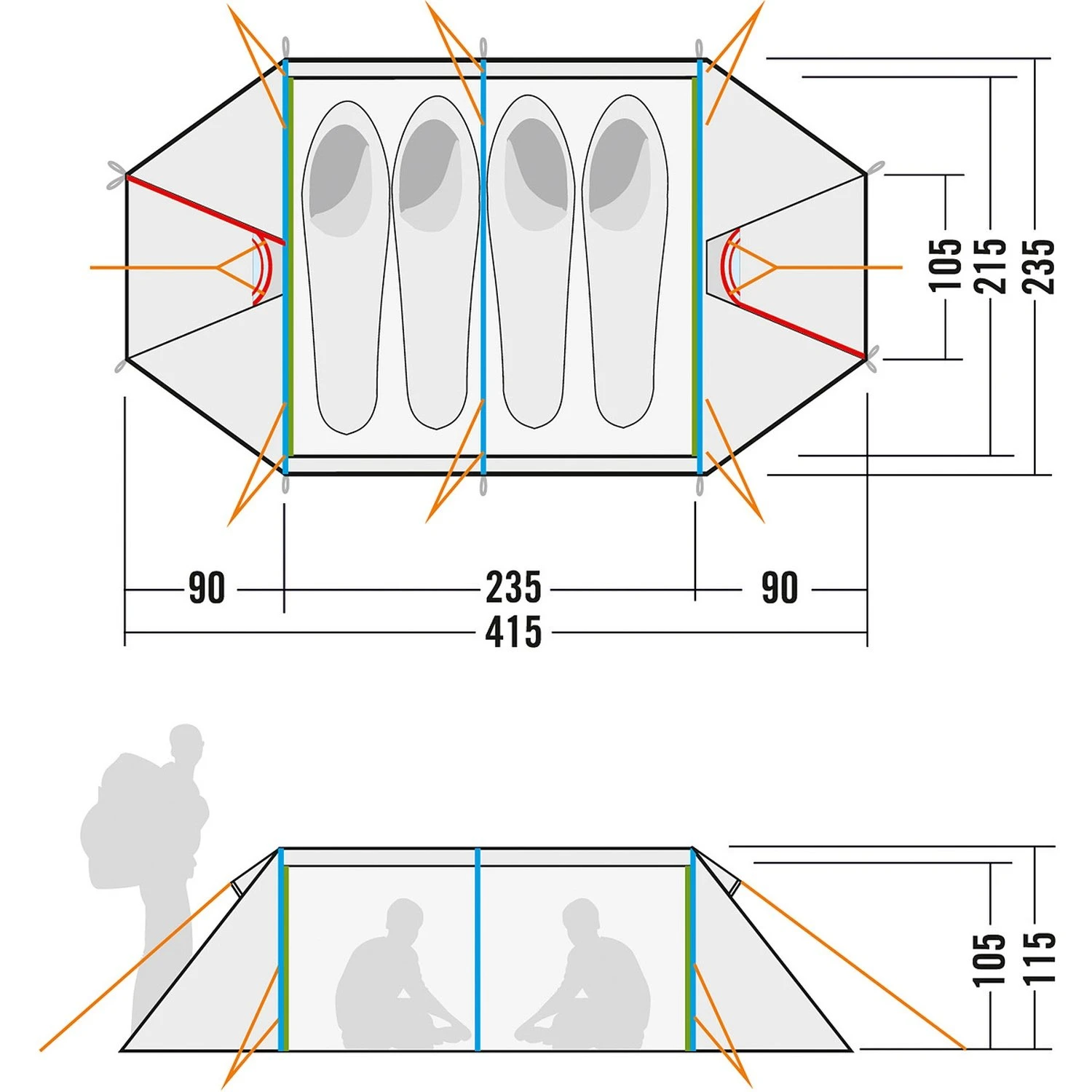 • Zelt und Innenzelt von beiden Apsiden-Seiten betretbar