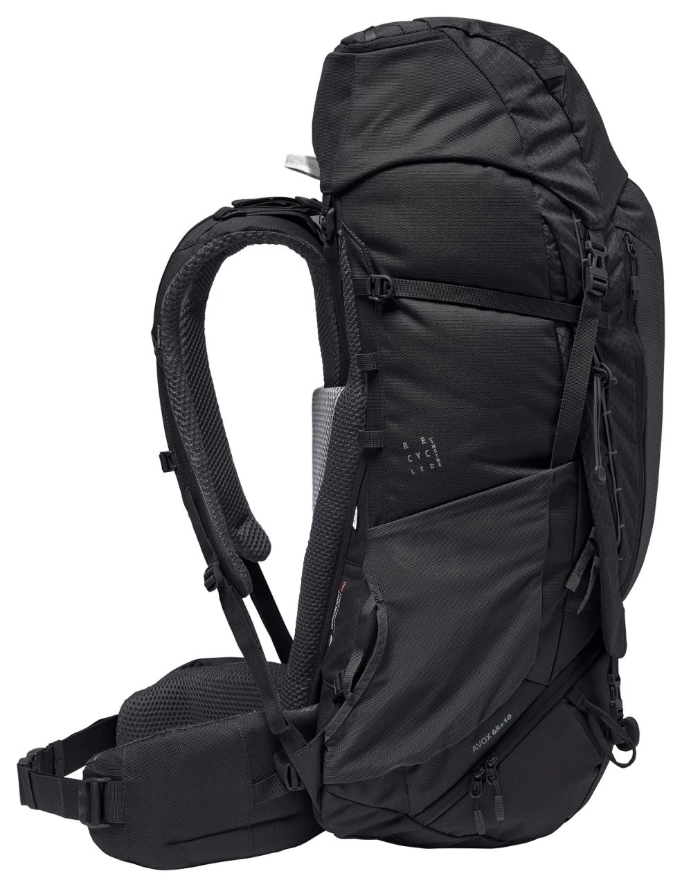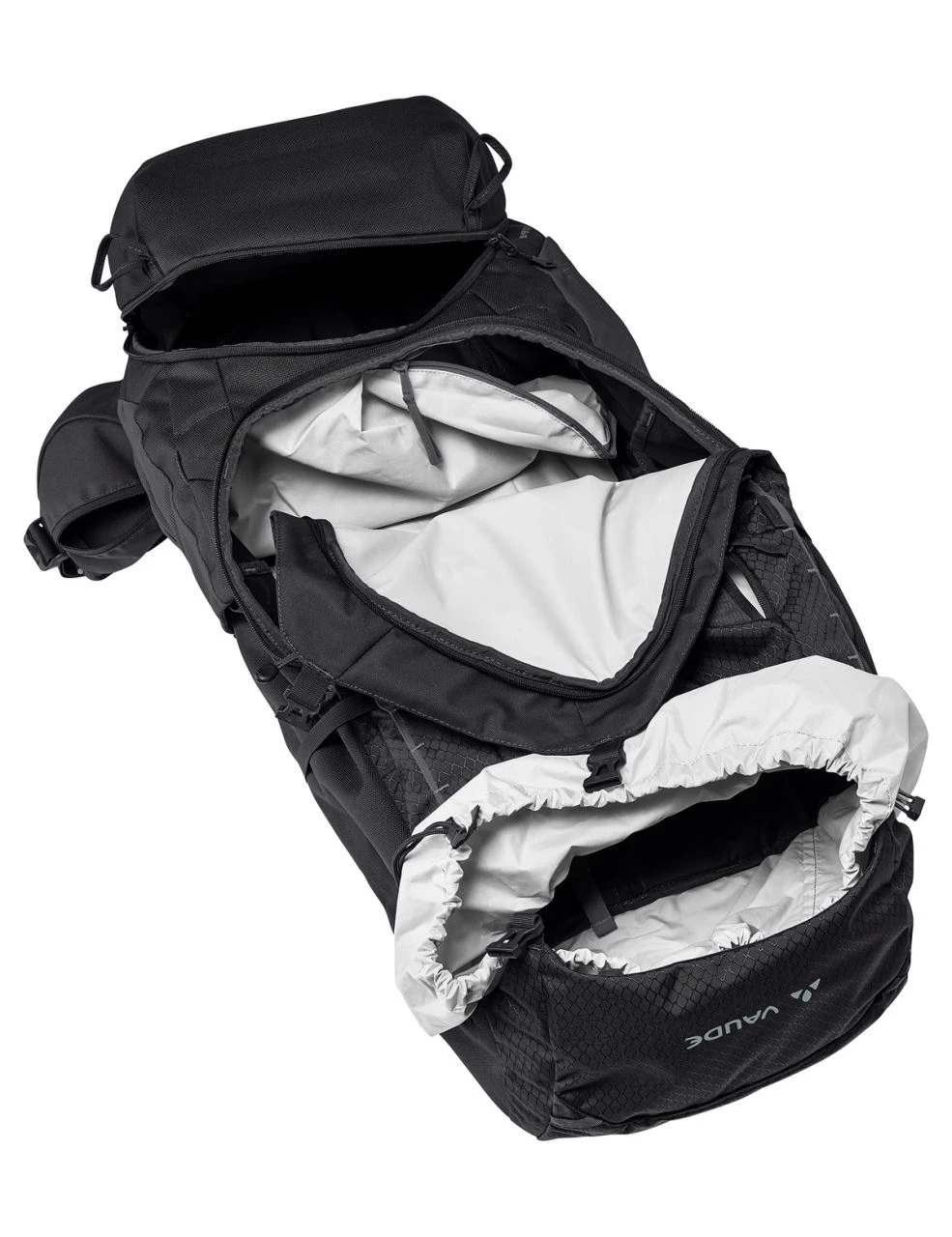 Auf in die unberührte Natur! Auf langen Touren in abgelegenen Regionen transportieren Trekkingprofis mit dem großen Trekkingrucksack mit 65 Liter Volumen Verpflegung und Ausrüstung für mehrere Wochen – egal, ob Trekking in Island oder Südamerika. Das Tergolight Comfort Space Pro-Tragesystem gewährleistet optimale Gewichtsverteilung bei schweren Lasten. Die spezielle Rückenpolsterung des Trekkingrucksacks entlastet das Iliosakralgelenk – der Spalt im unteren Rückenbereich kann Druckschmerzen vorbeugen. Die gepolsterten Ergoshape-Schulterträger entlasten zusätzlich und bieten Bewegungsfreiheit für die Arme. Rückenlänge sowie Lastenpositionierung sind individuell anpassbar und sorgen für den korrekten Sitz des Trekkingrucksacks. Der dick gepolsterte Hüftgurt mit Tasche sorgt für extra hohen Tragekomfort. Das Gepäck lässt sich von oben und vorne aus dem Hauptfach entnehmen. Ein Schlafsack o. ä. passt ins separate Bodenfach. Alles, was unterwegs griffbereit sein soll, nimmt die Fronttasche auf. Die Seitentaschen sind erreichbar, ohne den Trekkingrucksack abzusetzen. Die Daisy Chain und die variabel positionierbaren Kompressionsriemen bieten viel Befestigungsmöglichkeiten für weitere Ausrüstung. Unter dem Deckel befindet sich für den Fall des Falles eine Ersatzschnalle. Der höhenverstellbare, abnehmbare Deckel ermöglicht die Zuladung von weiteren 10 Litern – dieser lässt sich zudem zur Hüfttasche umfunktionieren. Auch bei großem Gepäck kann sich der Kopf vor dem Deckel frei bewegen. Mit der integrierten Regenhülle trotzt der Trekkingrucksack jedem Wetter. Das Hauptmaterial ist zu 100 % recycelt und extrem robust und abriebfest. Unser VAUDE Green Shape-Label gewährleistet ein umweltfreundliches, funktionelles Produkt aus nachhaltigen, bluesign® zertifizierten Materialien.