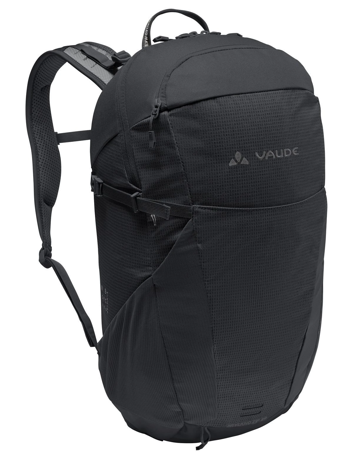 Modern und alltagstauglich – der Toploader Rucksack Neyland Zip 20 mit abnehmbarem Hüftriemen. Dieser multifunktionelle Rucksack eignet sich fürs Wandern und Klettersteige genauso wie für Uni und Stadtalltag. Das innovative Rückensystem mit den strukturierten Schaumstoffmodulen sorgt für eine gute Belüftung und gleichzeitig für einen stabilen Rückenkontakt. Die Schulterträger sind weich gepolstert und sorgen für einen guten Tragekomfort. Die integrierte EMP Platte (ergonomic movement panel) unterstützt die natürliche Rückenbeugung beim Aufstieg oder auf dem Fahrrad und verhindert, dass das Gepäck auf den Rücken durchdrückt. Ausgestattet ist der vielseitige Wanderrucksack mit einem großen Hauptfach und einem separaten Trinksystemfach, das alternativ auch als Laptopfach (bis 15″ Zoll) verwendet werden kann. Die großzügige Reißverschluss-Fronttasche hat zusätzlich ein gepolstertes Handyfach. In die seitlichen Stretch-Taschen passen Getränk oder Mütze. Wanderstöcke können an der Stockbefestigung befestigt werden und die seitlichen Kompressionsriemen dienen als weitere Gepäckfixierung. Weiteres Gepäck kann in die offene Stretchtasche auf der Front verstaut werden. Eine Regenhülle ist inklusive. Der Neyland Zip 20 wurde aus überwiegend recyceltem Material hergestellt und ist außerdem klimaneutral: Die Emissionen aus Materialien, Herstellungsprozess und Versand wurden ganzheitlich ermittelt und systematisch reduziert. Aktuell nicht vermeidbare Emissionen wurden vollständig über die unabhängige Non-Profit-Organisation „myclimate“ kompensiert. Das VAUDE Green Shape-Label steht für ein umweltfreundliches, funktionelles Produkt aus nachhaltigen und bluesign® zertifizierten Materialien.