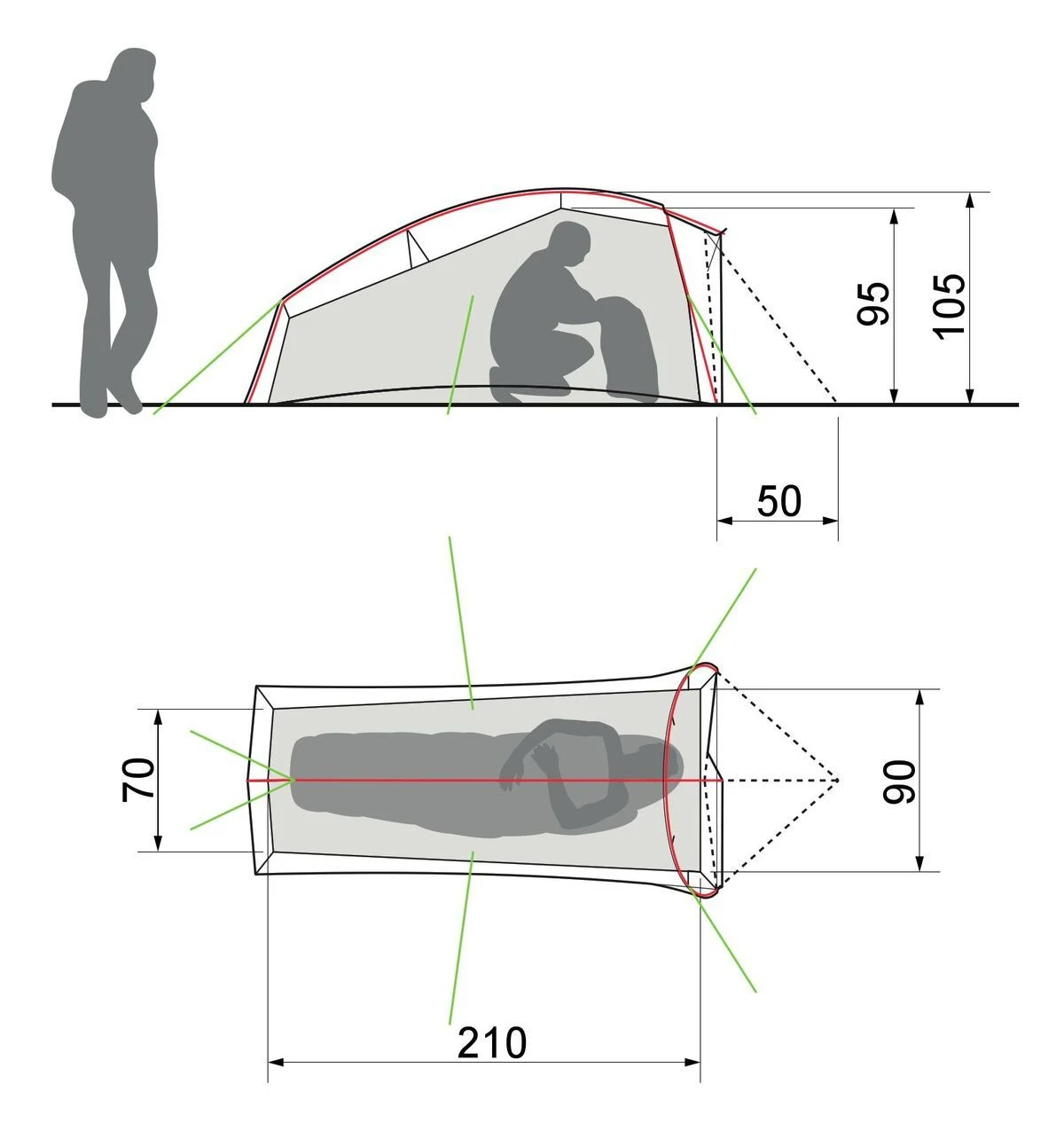 Ob mit dem Mountainbike in die Berge oder zu Fuß nach Santiago de Compostela: Das ultraleichte Taurus 1-Personen Zelt mit nur rd. 1,2 Kilo Gewicht ist perfekt für die Solo-Tour mit leichtem Gepäck – für mehr Unabhängigkeit unterwegs. Das 3-Seasons-Zelt ist auch bei Regen mittels der Gestängekanäle und des bereits eingehängten Innenzelt schnell und einfach aufgestellt und sorgt durch die bewährte Taurus-Stativ-Konstruktion für eine hohe Windbeständigkeit. Die Nähte wurden mit einem beidseitig silikonisierten Tape versehen und machen das Außenzelt damit absolut wasserdicht und noch widerstandsfähiger – ein Vorteil, den nur VAUDE bietet. Das Innenzelt selbst ist optimal belüftet und schützt dabei vor Kondenswasser und unliebsamen Krabbeltieren. Seine großzügige Innnehöhe ermöglicht, dass man bequem sitzen und geschützt im Inneren essen kann; auch das Gepäck findet darin ausreichend Platz. Seitliche Netztaschen halten Kleinutensilien auch im Dunkeln stets griffbereit verwahrt. Die vordere Apsis bietet weiteren großzügigen Stauraum für Gepäck, Schuhe, Helm und andere Ausrüstungsgegenstände. Die regensichere Belüftung ist stufenlos regulierbar und sorgt für eine optimale Ventilation und ein angenehmes Schlafklima. So ist man beim Bikepacking, auf der Wochenendtour oder der Pilgerreise vor Wind und Wetter immer bestens geschützt und am nächsten Morgen gut erholt. Vor der Weiterreise kann das Zelt im Packsack mit weiter Öffnung schnell verstaut und dank der Befestigungsbänder einfach am Rad oder am Rucksack angebracht werden. Das Taurus SUL 1P ist das kleinste Zelt in unserer erfolgreichen VAUDE Taurus-Zeltreihe; es ist der Umwelt zuliebe zu 100 % PFC-frei erstellt. Also – warte nicht länger – auf ins Abenteuer!